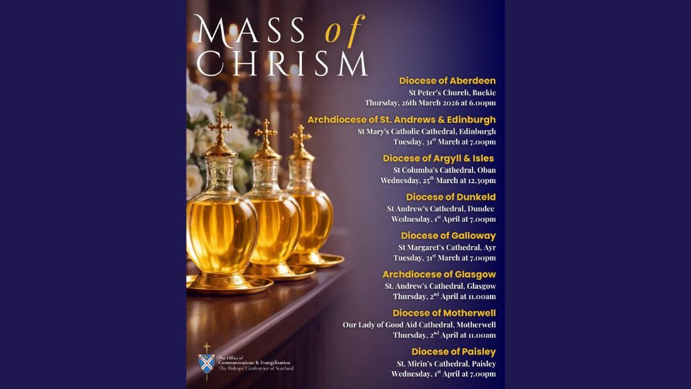 The Mass of Chrism is a powerful moment in the life of the Church, where priests renew their promises and the oils used in the sacraments are blessed. It takes place at St Mary’s Cathedral, Edinburgh, on Tuesday 31 March at 7:00pm